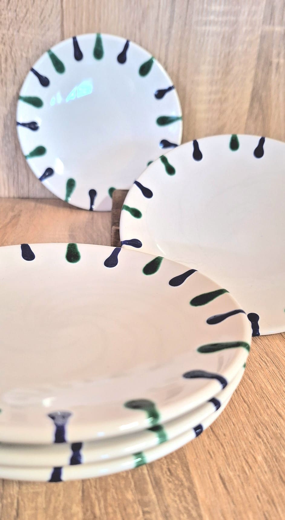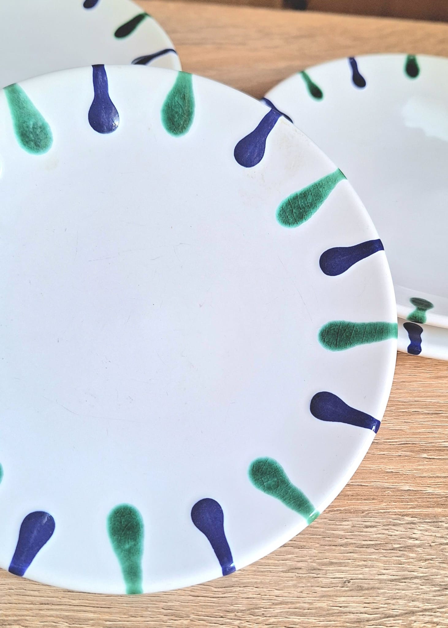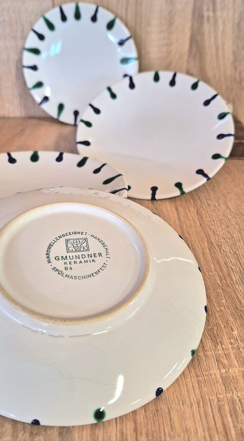 Set (6 pieces) of Gmunder saucers, blue/green pattern, hand-painted